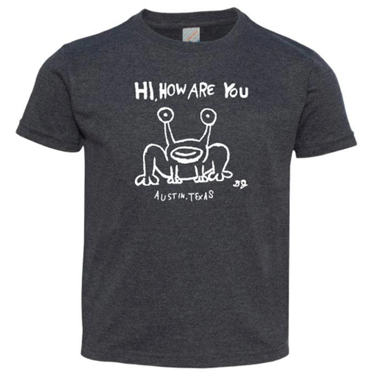 Hi How Are You Toddler White on Vint. Navy Poly Cotton blend with Tear away Inside tags