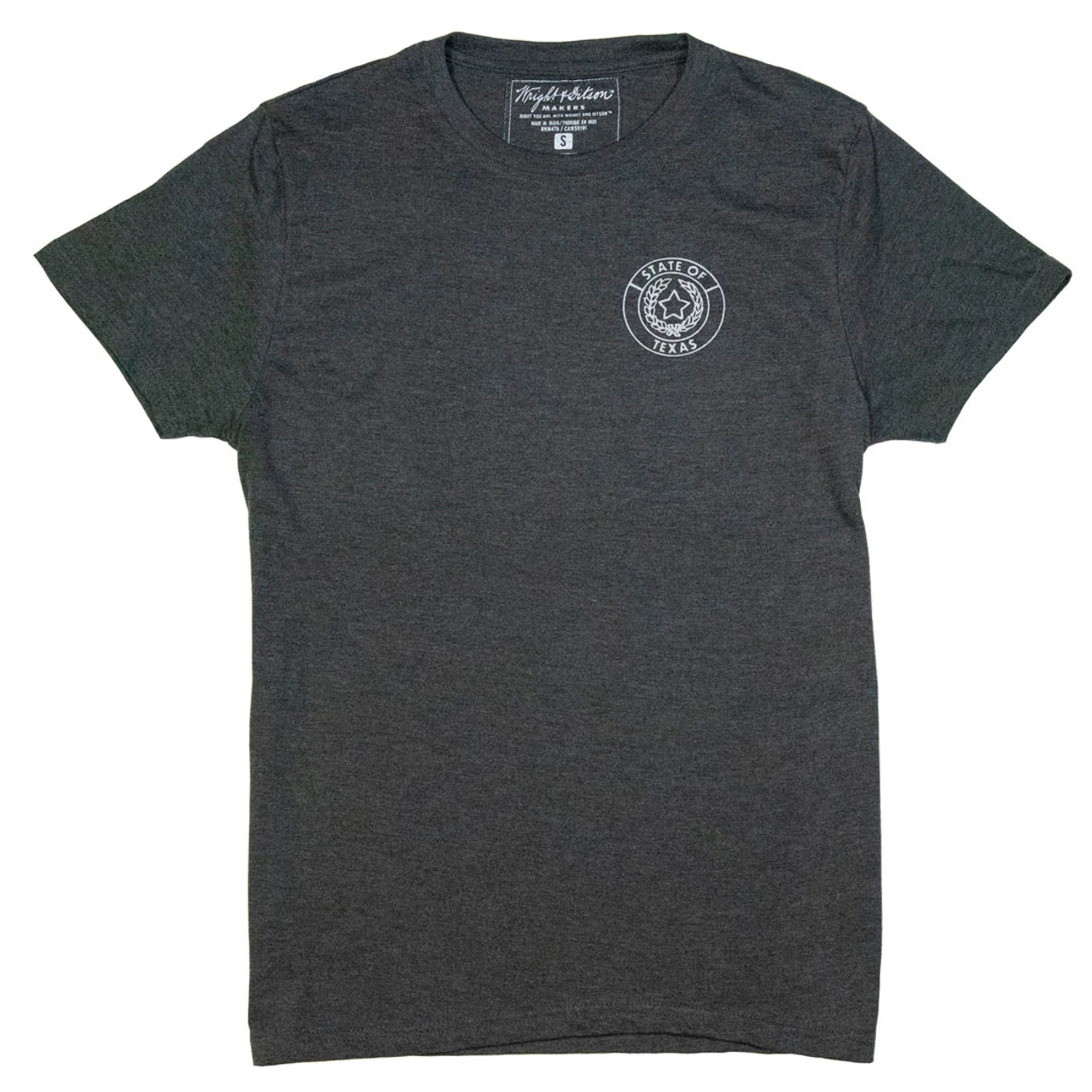 - State of Texas graphic on front right chest