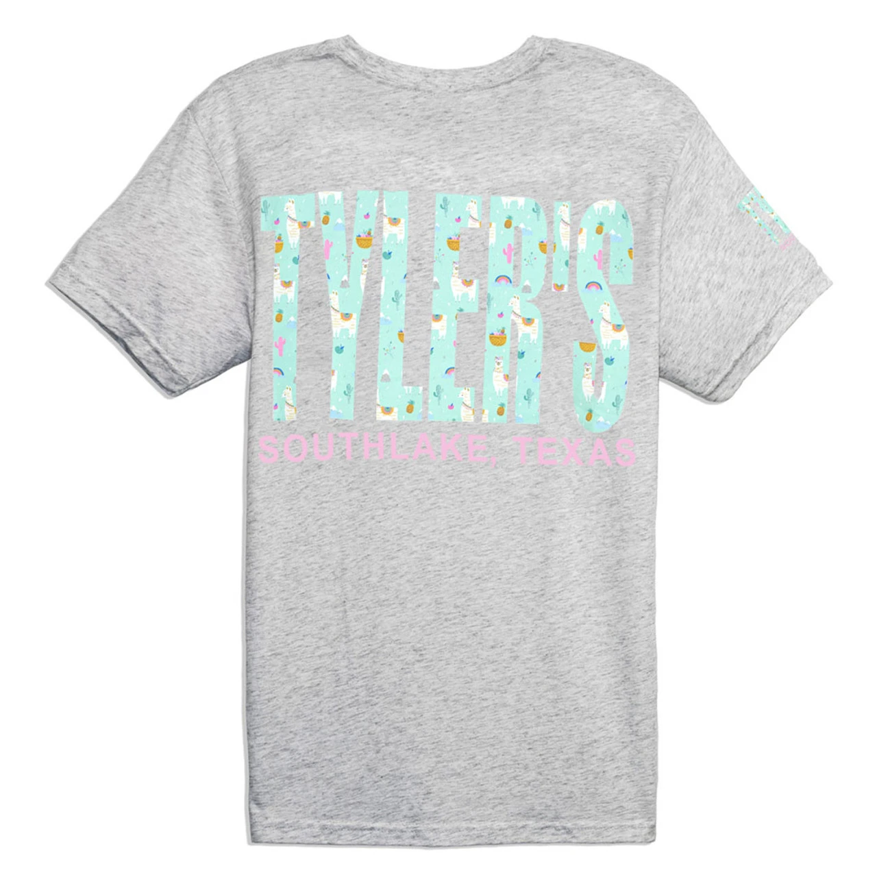 - TYLER’S block logo on the back with a smaller TYLER’S on the front and right sleeve.