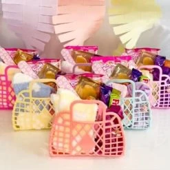 Sun Jellies created an adorable MINI version of their bestselling RETRO basket! They make perfect little gift baskets that you can fill with party favours, confectionery, cosmetics, bath products and jewellery. Or use one on your desk to keep your bits and bobs tidy. Irresistibly cute, everyone will love the MINI Retro Basket! Easy to assemble by popping the sides together.