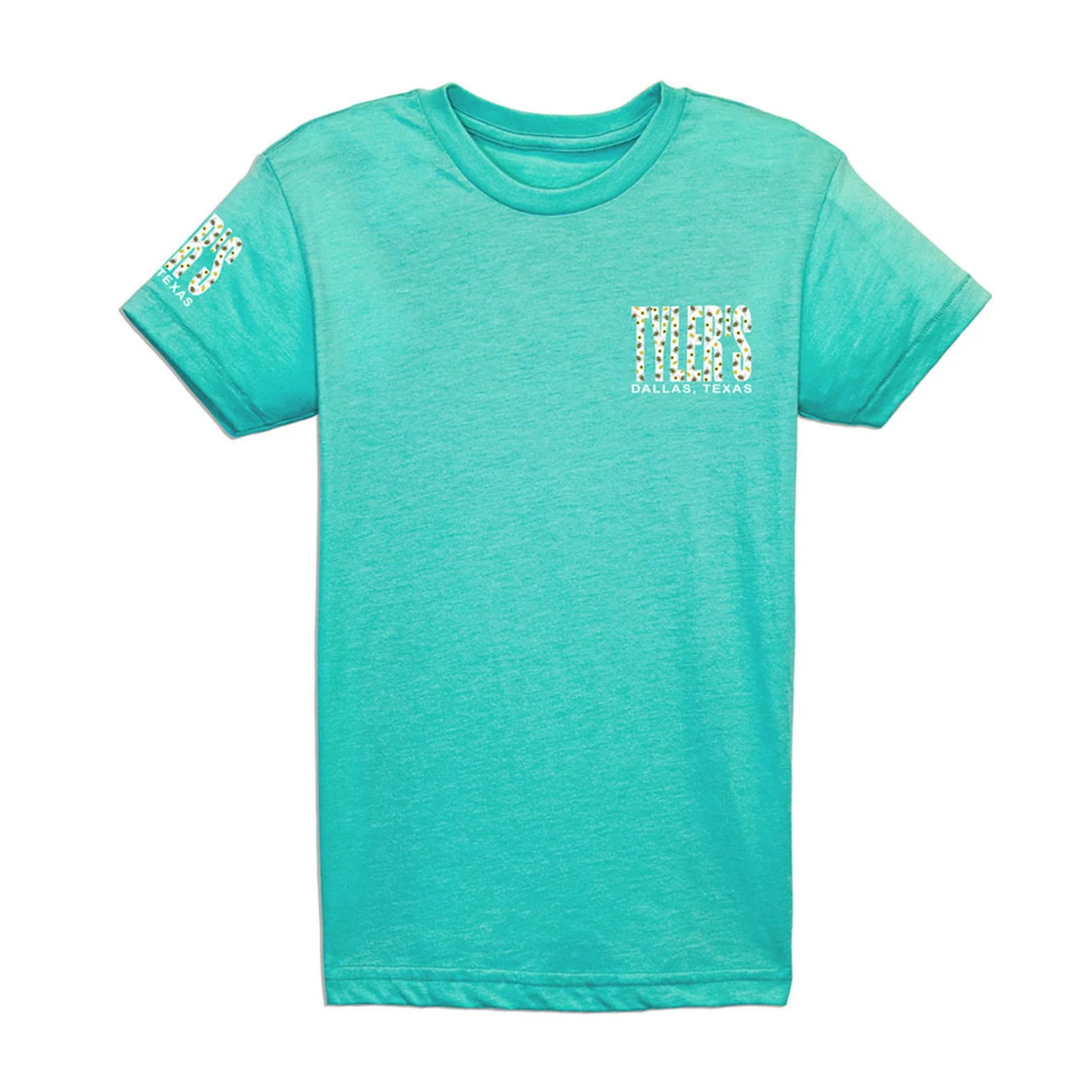 - TYLER’S block logo on the back with a smaller TYLER’S on the chest and right sleeve.