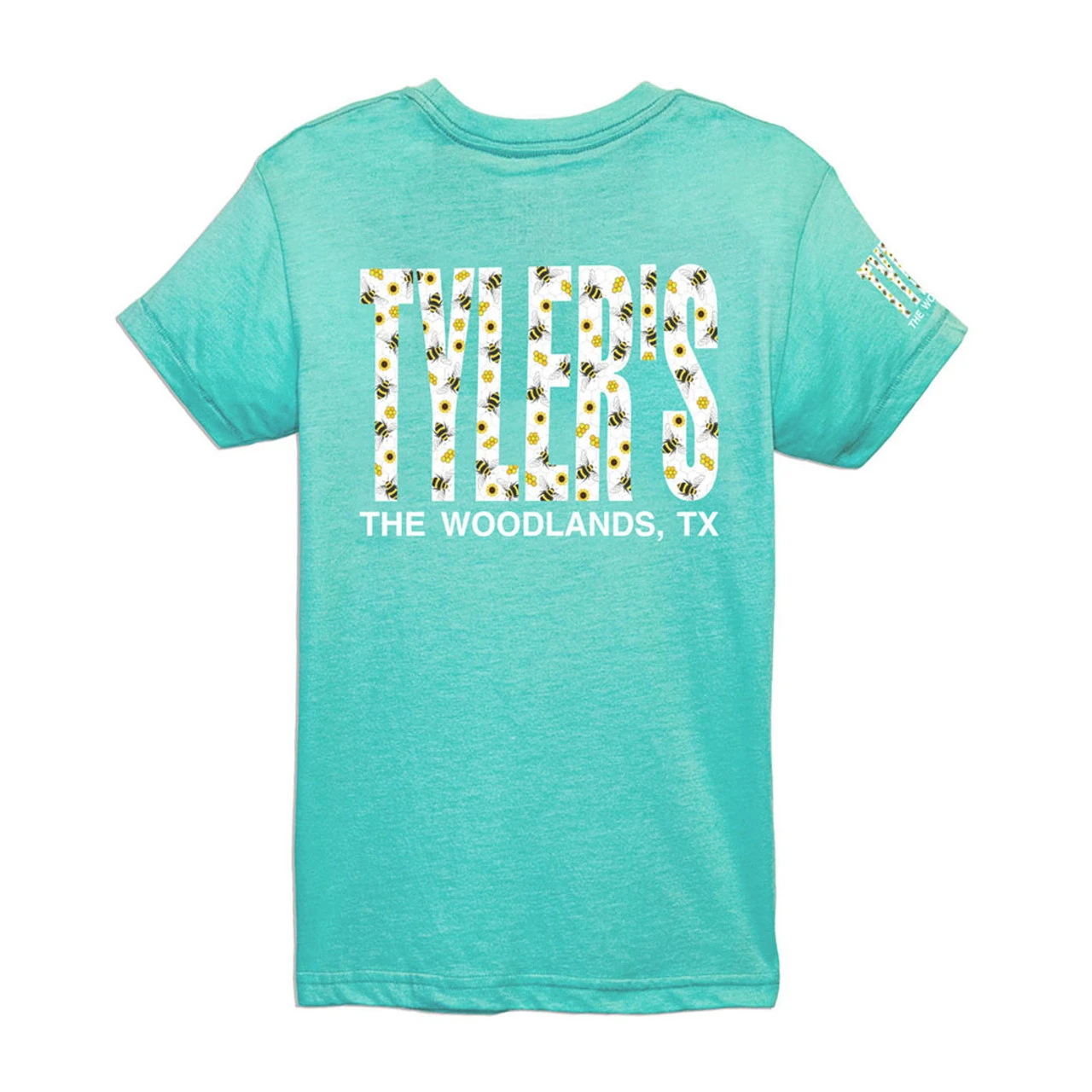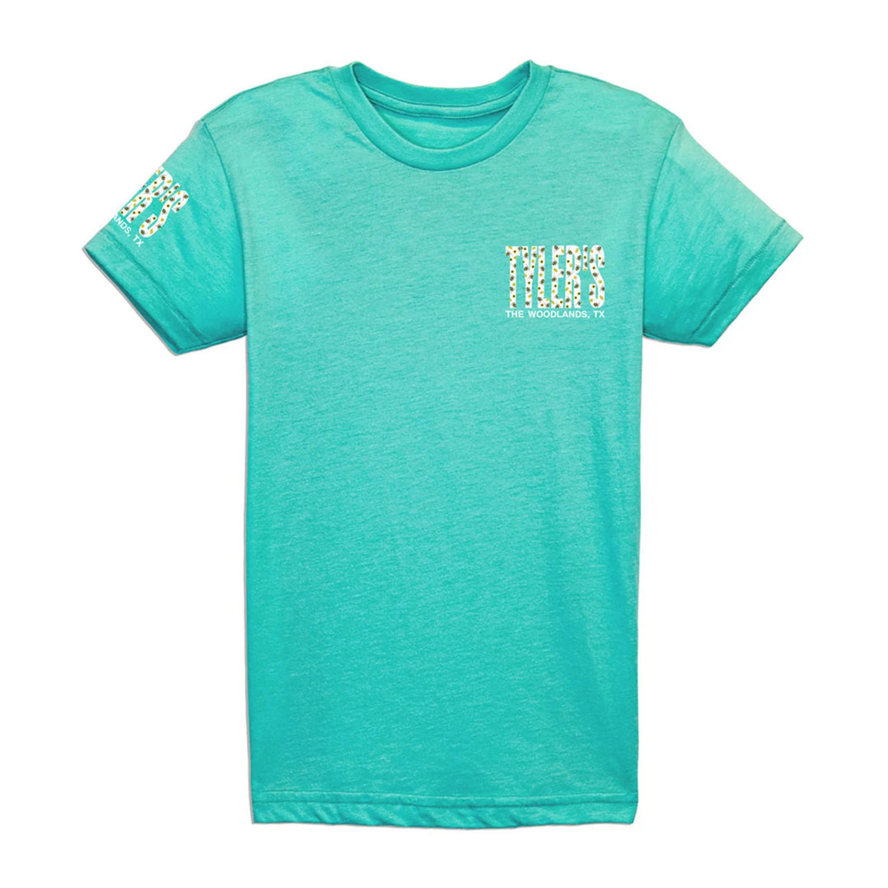 - TYLER’S block logo on the back with a smaller TYLER’S on the front and right sleeve.