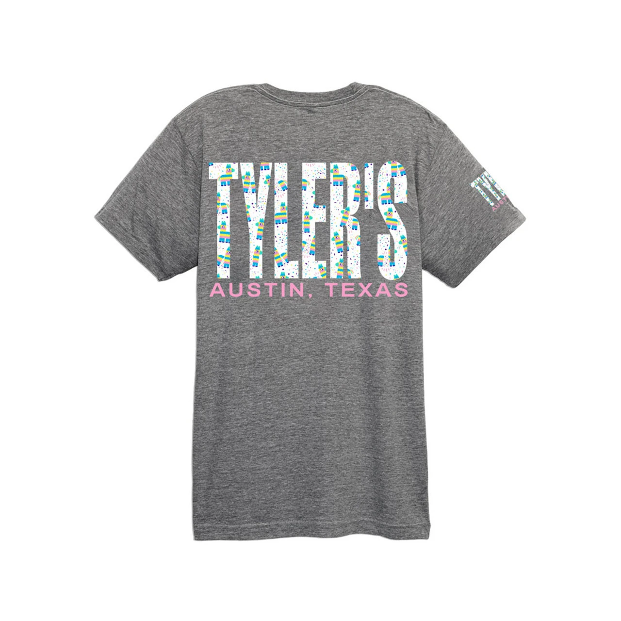 - TYLER’S block logo on the back with a smaller TYLER’S on the front and right sleeve.